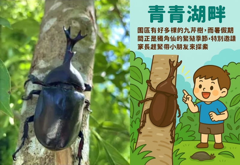 4.【自然探索×獨角仙尋寶】 夏天限定的獨角仙正在九芎樹上現身,帶著任務卡出發,來場最刺激的生態尋寶之旅!
