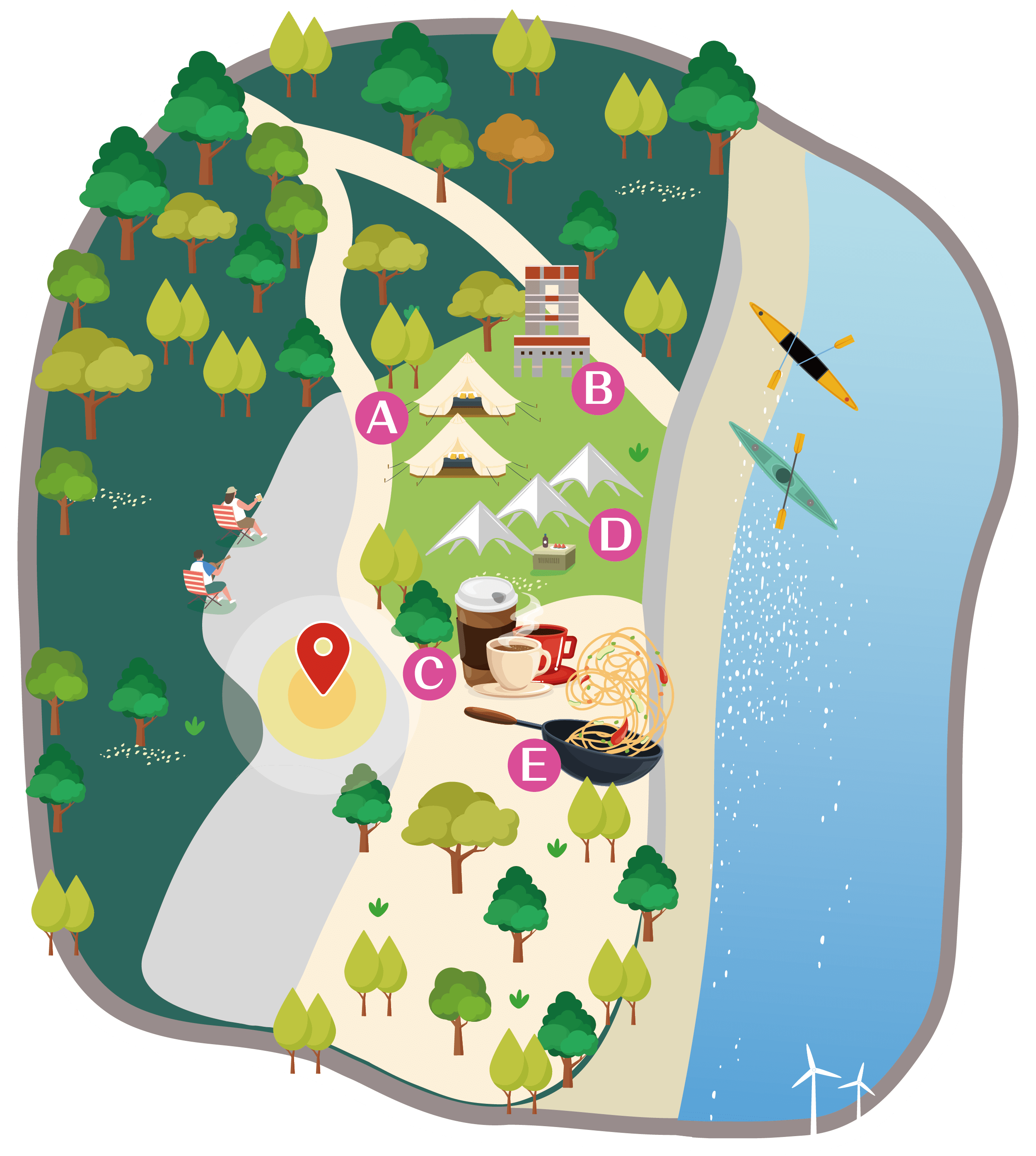 我們提供一卡皮箱免裝備露營,提供專屬的管家服務採用當地當季食材,菜色及料理手法經常變換的野地餐酒私廚料理,滿足每位入住的貴賓挑剔的嘴。